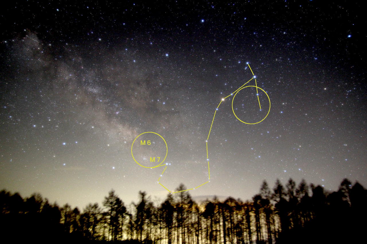 さそり座アンタレスのすぐ右側、サソリのツメがイメージされるあたりに・・