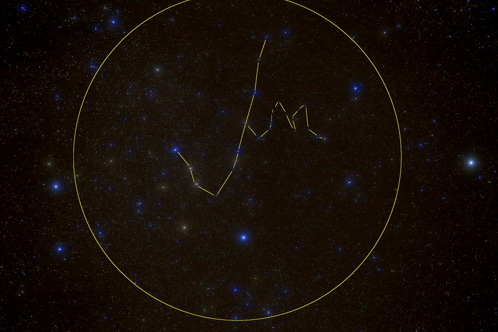 この一直線の中間あたりから丸で螺旋を描くような星列が続きます。