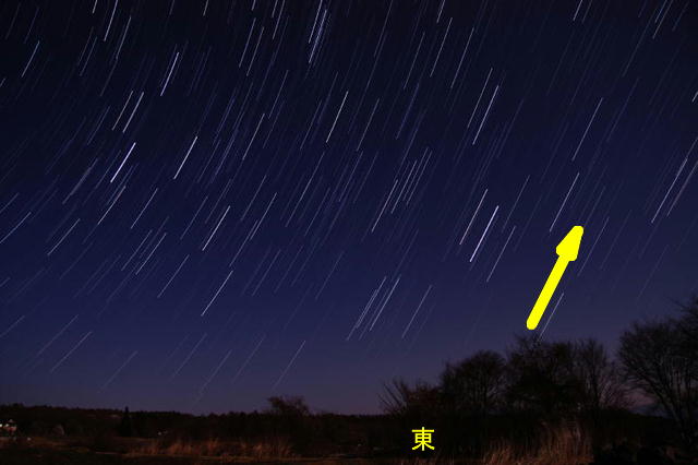 東の空では星は斜め右上に動いてゆきます。