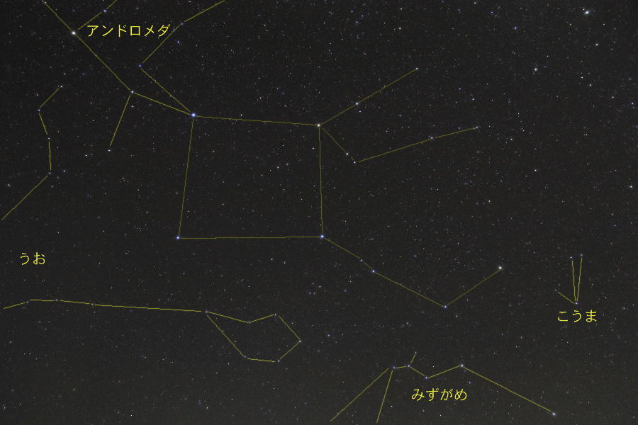 それ以外も四辺形の西側(右側)の二つの星を南(下)にたどると、秋の星座の