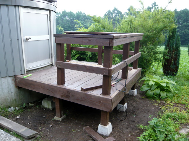 手すりを付けて、デッキの外周に幕板を貼り付けました。