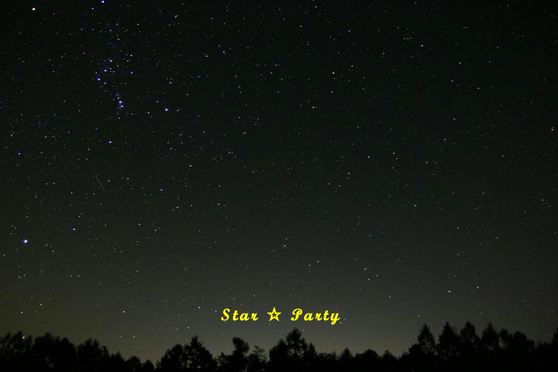写真の左側にオリオン座が写っていますが、その下にうっすらと流星が