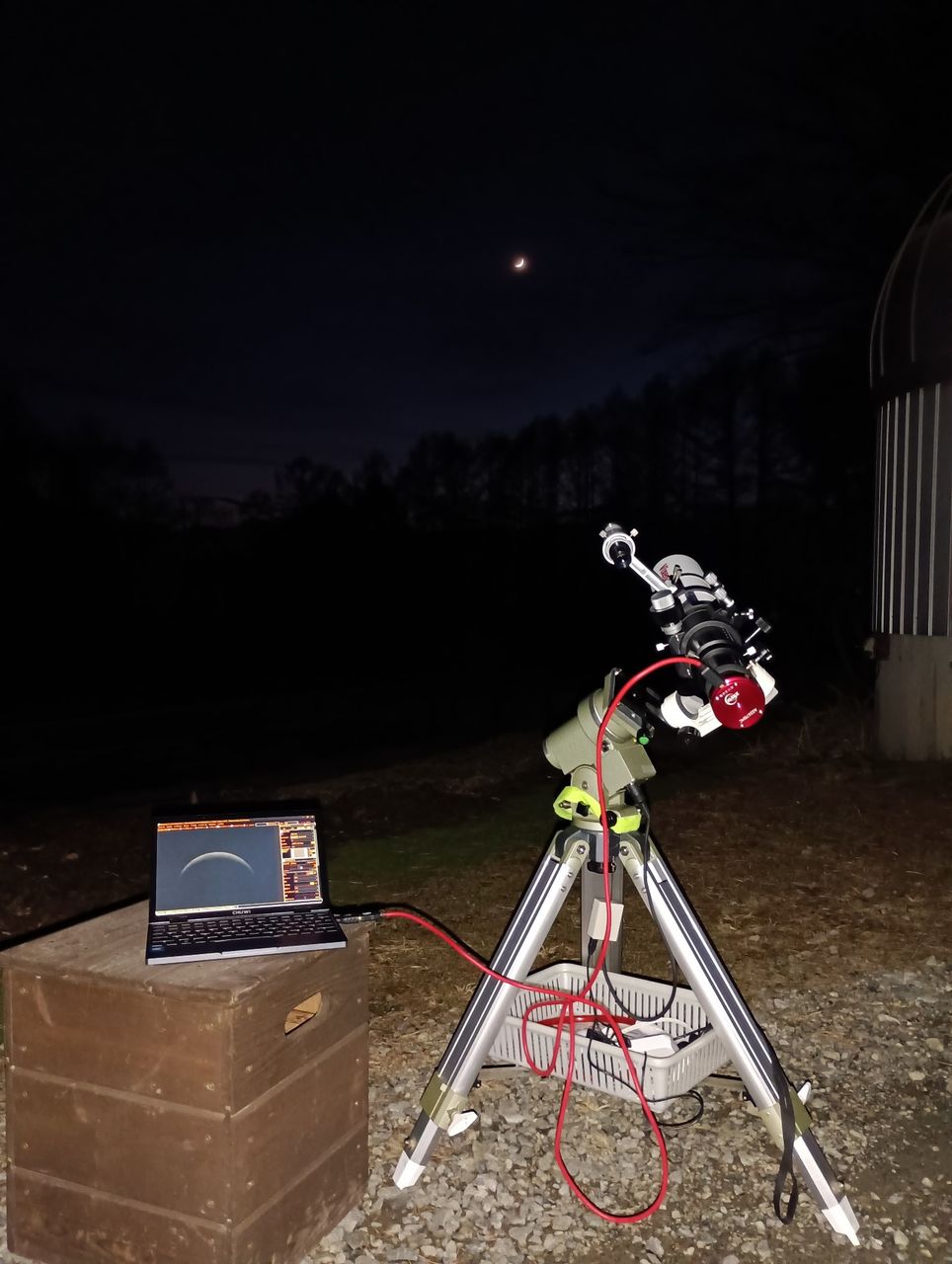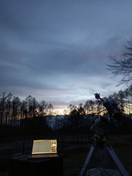 夕方少し雲が切れていたので夕刻の西空に廻った月を撮影するためSDE72SSを準備