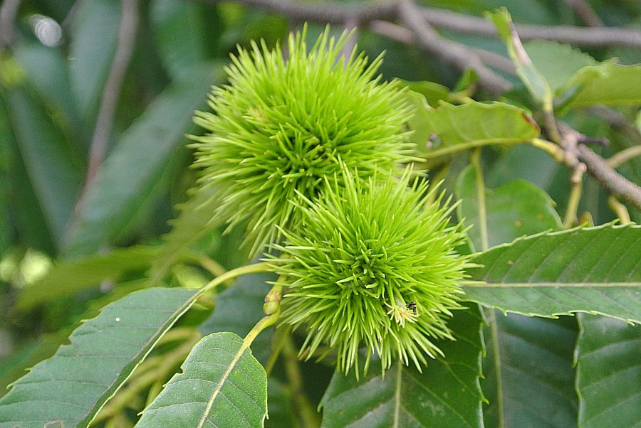 スタパ近くの栗林ではクリの実がすっかり一人前のイガになっていて