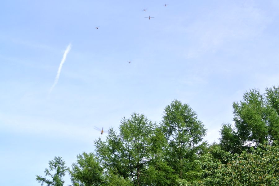実際にはぶつかって来ないか心配になるほどたくさん飛んでいます。)
