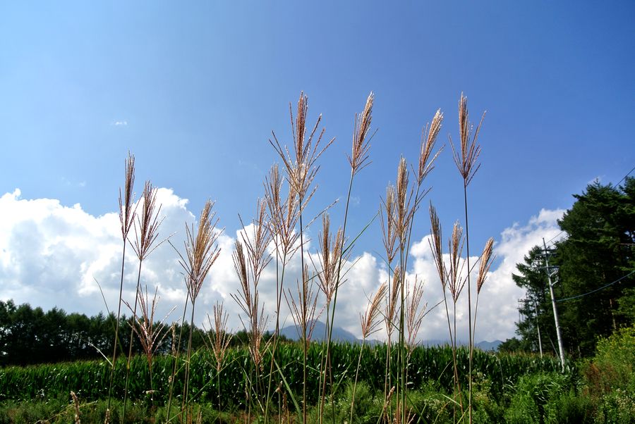 ススキの穂は白いふわふわしたイメージがありますが、まだ穂が
