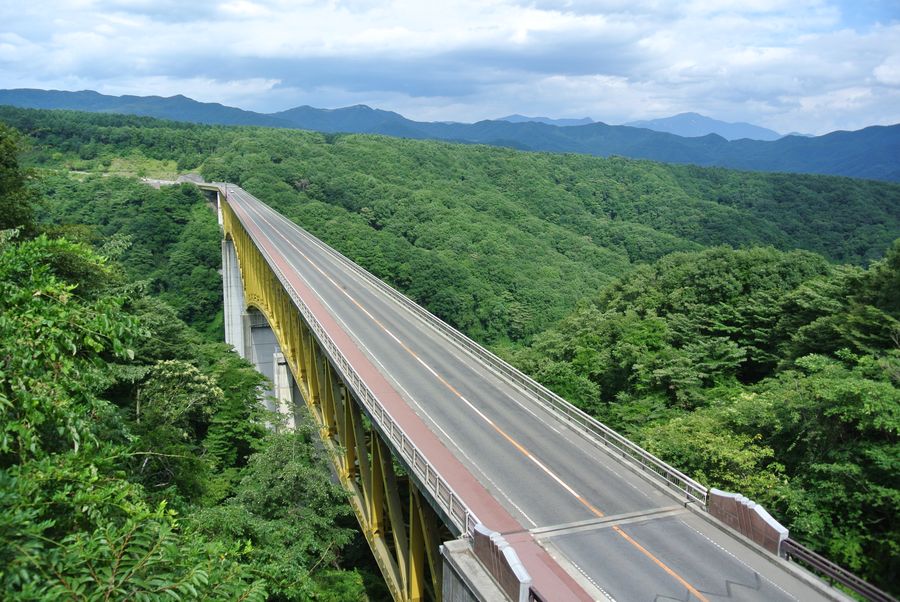 お盆期間中は(午後の散歩の時に)高原大橋上に車のない状態を写真に