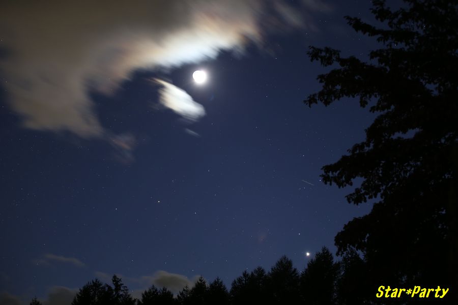 月の下やや右寄りにはさそり座のアンタレスも見えて、雲の表情と