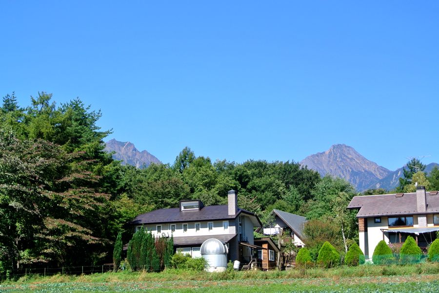 八ヶ岳の主峰赤岳(右奥の山)はつい先日まで山頂近くまで緑に覆われ