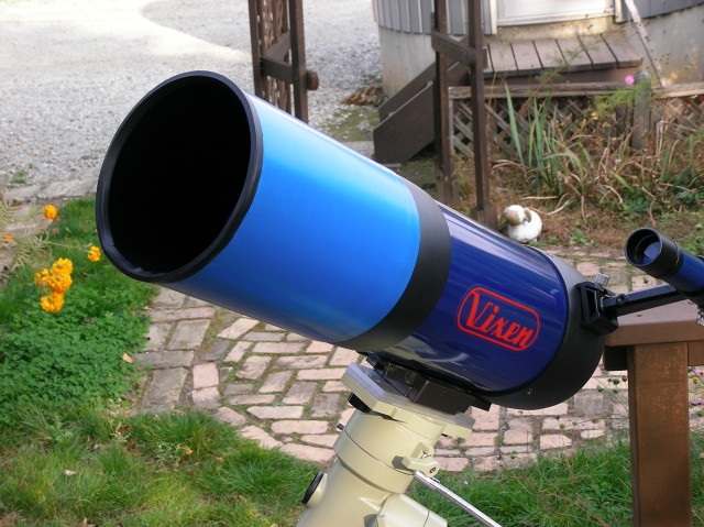 ここ数日で鏡筒の先に遮光フードを取り付け、三脚の開き止め金具の部分に小物置きボックスを取り付けました。
