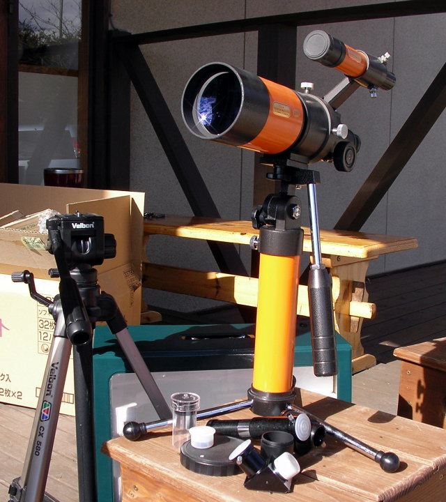 口径70mm、f=400mm、鏡筒自身にファインダーのような微動装置が付いていて、そのまま他の望遠鏡のサブスコープ的な使い方ができる優れものです。低倍率で使用する限りはかなりカチッとした星像を見せてくれます。