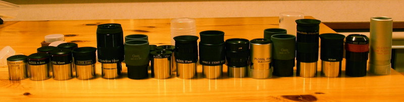 ここに並んでいるのはその一部分で全部では40個以上はあリます。数的にはそこそこのようですが、望遠鏡との相性や、倍率の分散のさせかたなどまで考えると、どうしても偏りがあって、まだまだ足りないと言わざるを得ない状況にあります。