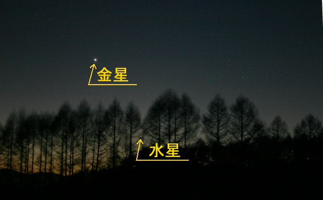 ご存知のこととは思いますが、「水星」は太陽系の中で一番内側の太陽に近いところを周っています。このため、地球から見ると大きく太陽から離れて見える事はなく、最大に離れても20度くらいしか離れません。また、20度離れている時でも太陽から真上に離れていることは少なく、斜めに離れていると日没後すぐに沈んでしまうということになり、なかなかはっきりと水星の姿を見る機会はないのが実情です。地動説をはじめに唱えたかのコペルニクスでさえ実際に水星を見たことがなかったと言うのは有名な話です。