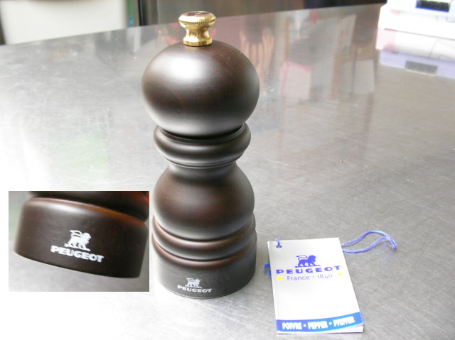 ペッパーミルの中ではプジョー(フランスの自動車メーカー)が一番だそうです。自動車メーカーがペッパーミルを作っているというのは意外なのですが、元々プジョーはスチール製品の加工が得意な会社で、自動車以前から鉄製品(馬車の車輪など)を生産していたそうです。胡椒をすり潰す歯車のような部品に特別なノウハウがあるようで、そこらで売っているものとはかなり違うようです。