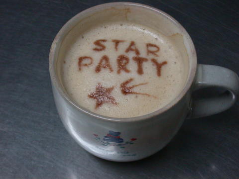 横でおかみはどこぞのブログで見つけたカフェオレアートの作り方を早速まねして、写真のようなカフェオレを作ってくれました。