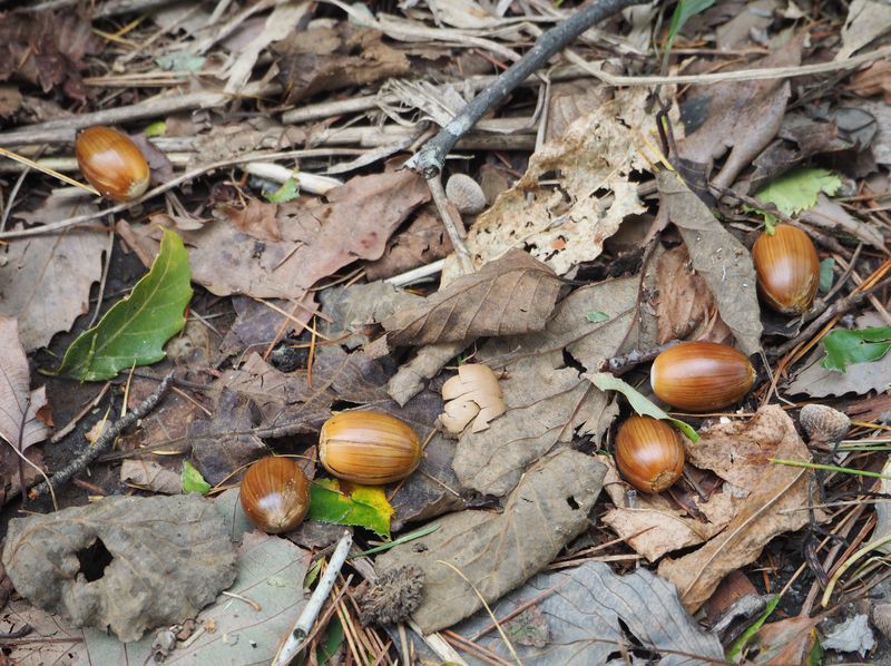 台風の風でドングリがたくさん落ちています。