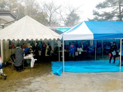 昨日の時点で雨なのが分かっていたので、いつもよりテントを多く立てたり、公民館の室内を利用したりと、あの手この手で快適にお祭りができるように工夫していました。