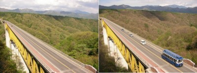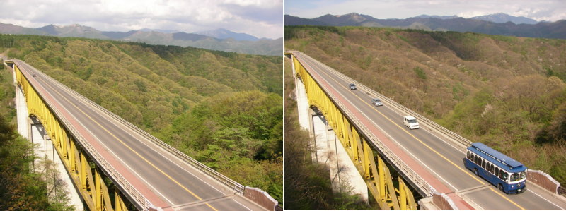 上の写真の右側は5月7日に撮影したもので、まだ山桜が咲いていて、他の広葉樹には葉が付いていないように見えます。左側は一昨日(16日)です、わずか9日で山桜は散り、全体に緑になっているのがお分かりいただけると思います。