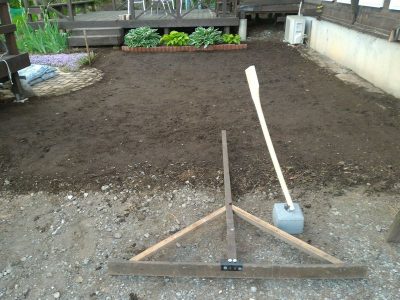 リセットした庭を平らにならしました。