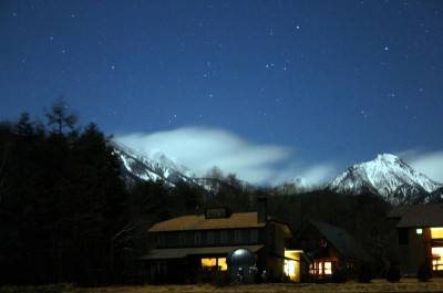 いつもお客様には「思わずハイキングに出かけたくなりますョ。」といっているのですが、先日参加したスノーシュートレッキングのインストラクター(蓼科スノートレッキング倶楽部)が実際にムーンライトハイクを募集していて、いつも大入り満員だそうです。