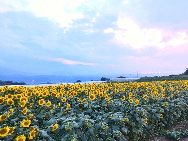 観光向けに時期をずらしながら咲かせるので満開になっている面積があまり広くなくて、見渡す限りというほどではないのですが、それでも畑一面のヒマワリはなかなか見応えがあります。