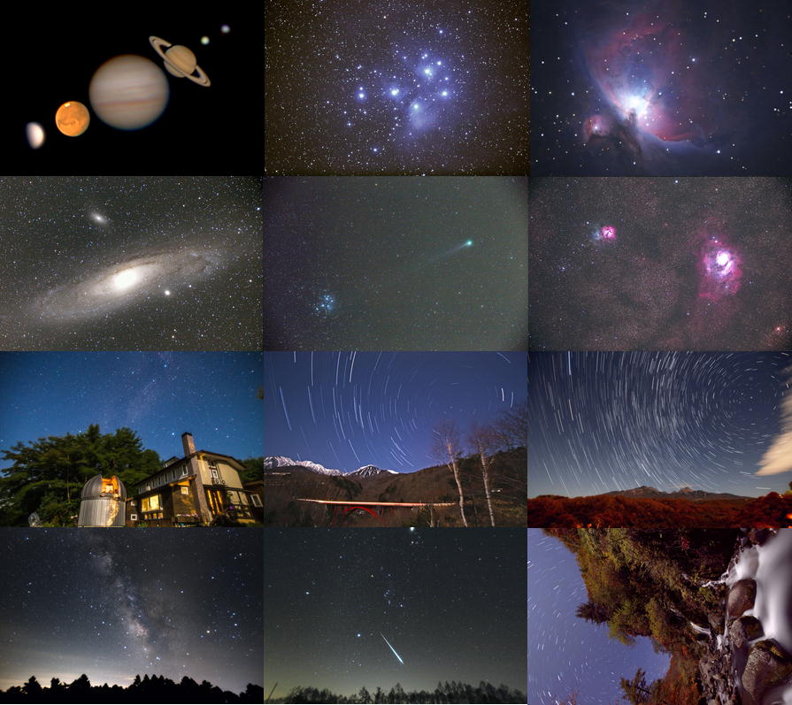 星景写真(下段)6種類と天体写真(上段)6種類の全部で12種類です。