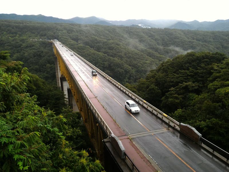 写真では判りにくいですが高原大橋の上はノロノロ、こちら側に渡りきった中村農場前では渋滞になっていました。
