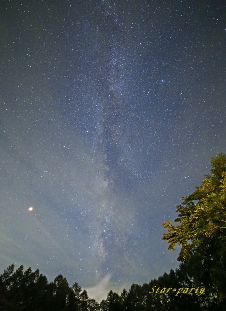 上は観察会の後に撮影した南西の空から天頂に向けて直立した天の川です。