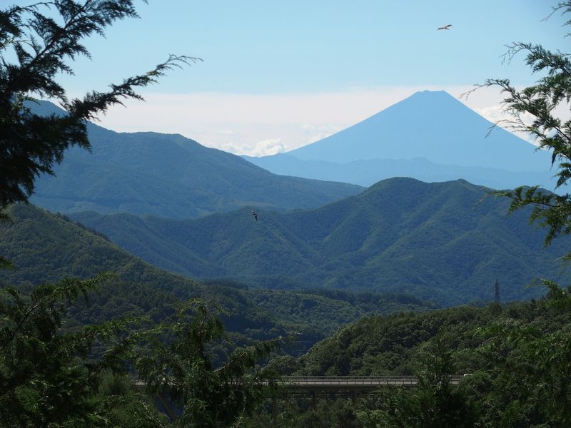 高原大橋と富士山に縁起良く鷹(トンビですが)が飛んでいました。