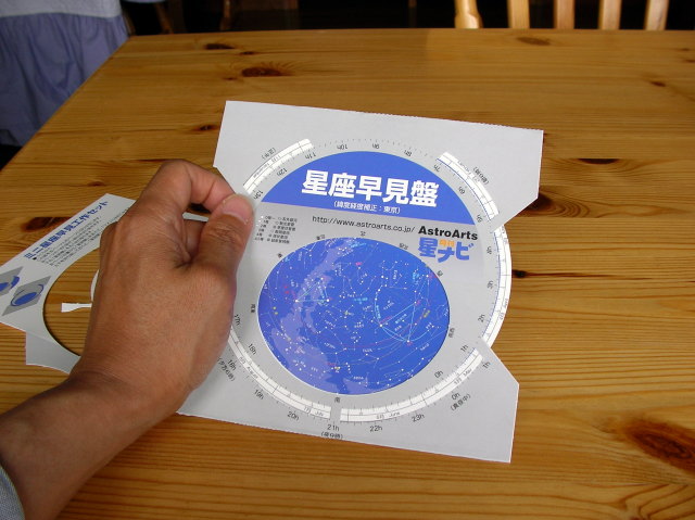 そして星座を覚えるために最も重要なアイテムが星座早見盤です。これさえあれば、その日、その時間に、どのあたりに、どの星座が見えているかおおよその検討をつけることができます。