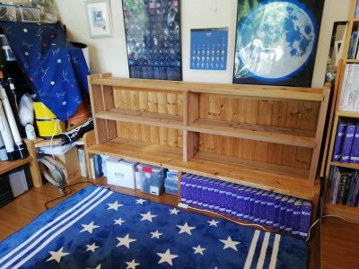 本棚の完成に伴ってプレイルーム全体の整理・片付け・清掃をしなければならないので、実はまだまだ先が長いのです・・・
