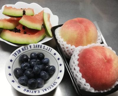 桃、ブルーベリー、スイカ・・・(気付いたらスイカは食べたあとでした・・・・orz)