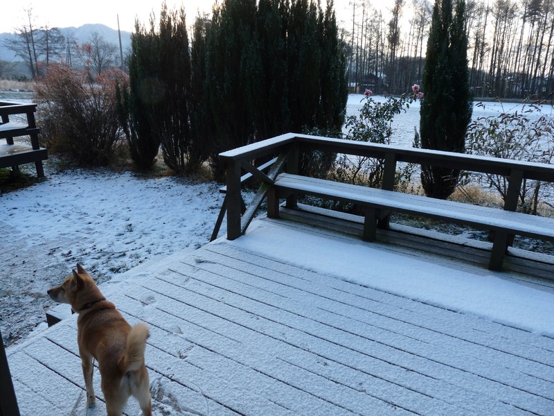 雪の予報なんて全くなかったのに、北八ヶ岳から舞ってきたのでしょう。