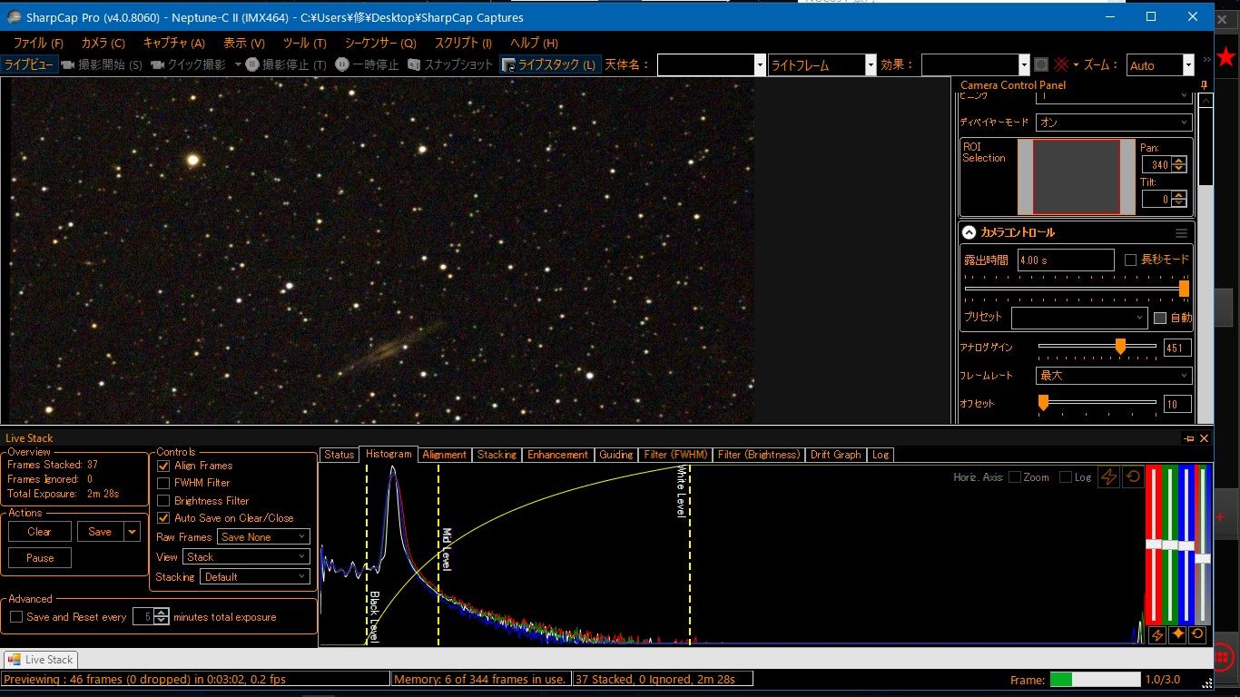 ダーク補正がうまくいっていないのか雨が降っているようなノイズがでてしまいましたが、まあそれなりですかね。