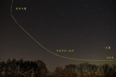 春の星座のランドマークとも言える「春の大曲線」も地平上に姿を現します。