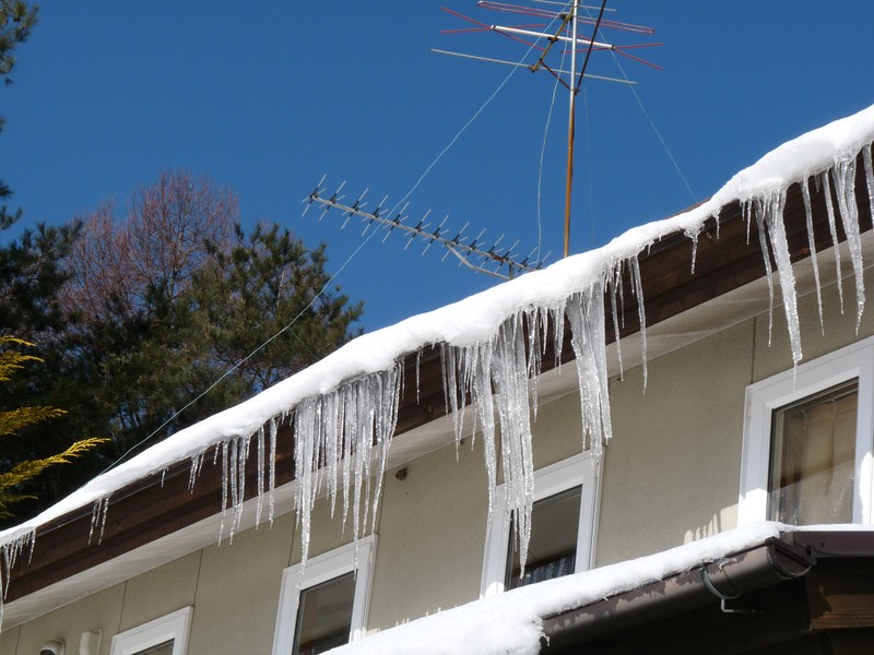 屋根からの氷柱(ツララ)も派手に延びて、雪景色を飾っています。