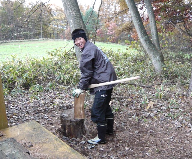 そんなわけで、シーズンオフの大事な仕事の一つに「薪割り」があるわけです。