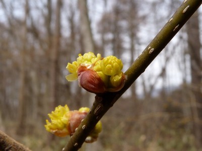 桜よりも先に黄色い花が森の中を彩り始めます。