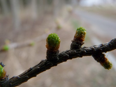 カラマツの芽がいよいよ緑を吹き出し始めました。