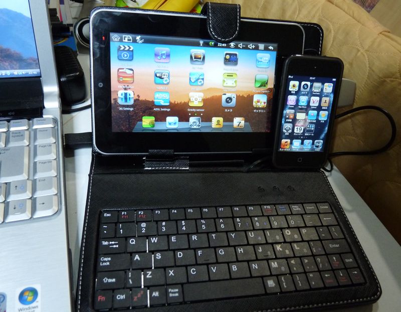 購入したのは中国製(メーカー不詳)Android2.1 USBキーボード付きの中古です。(貧乏性なもので・・・(^^;)
