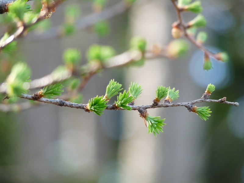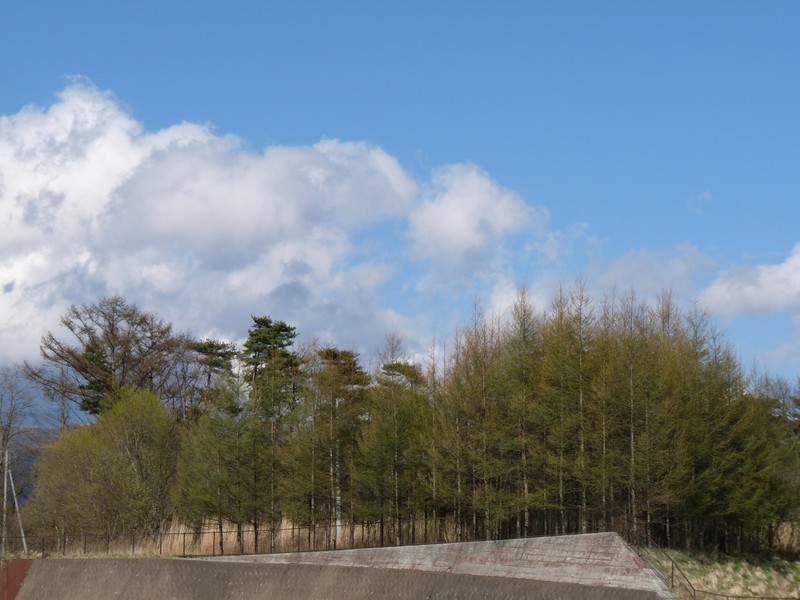 さて、ふと気づくとカラマツ林がうっすらと緑に色づき始めました。