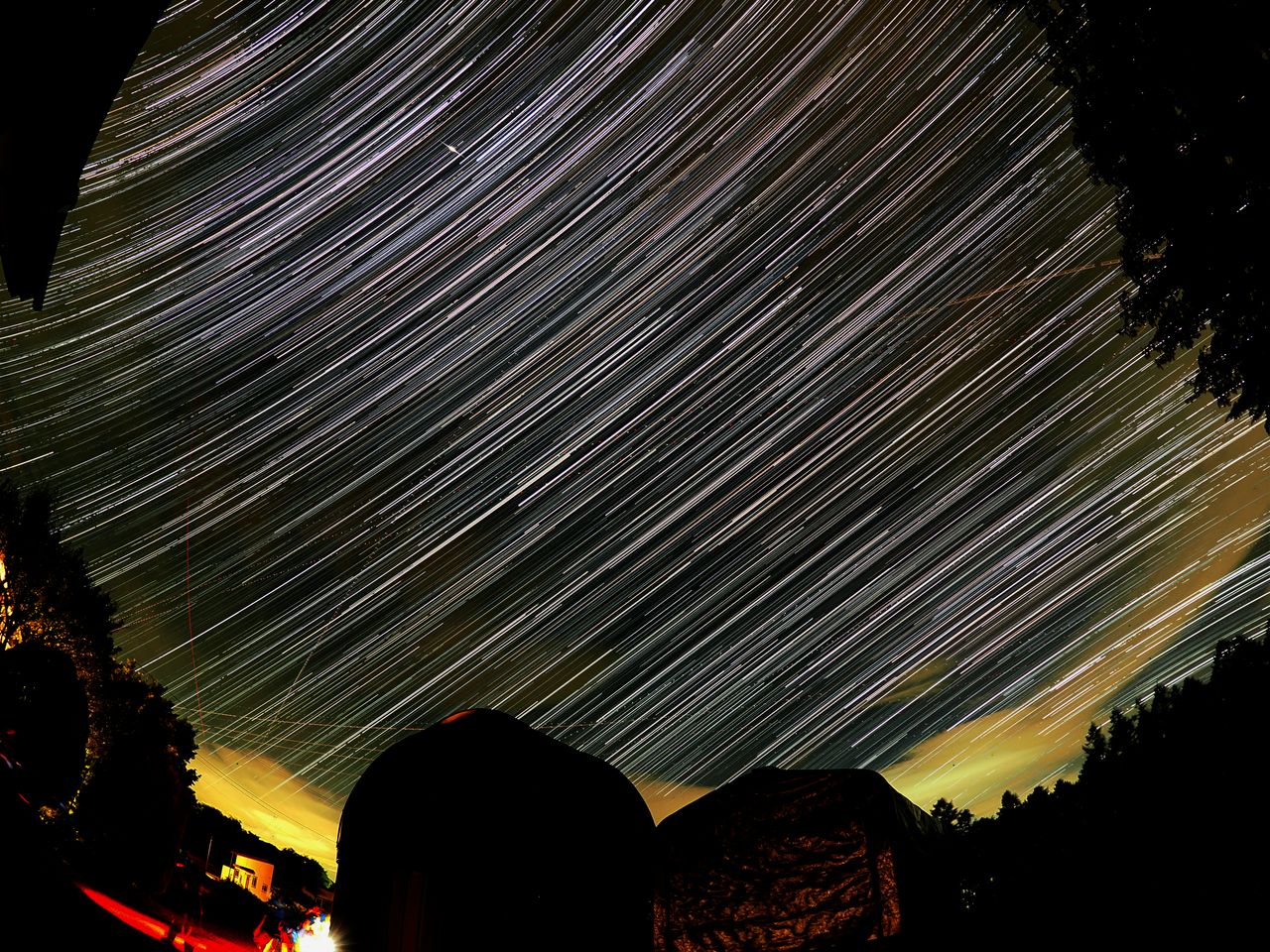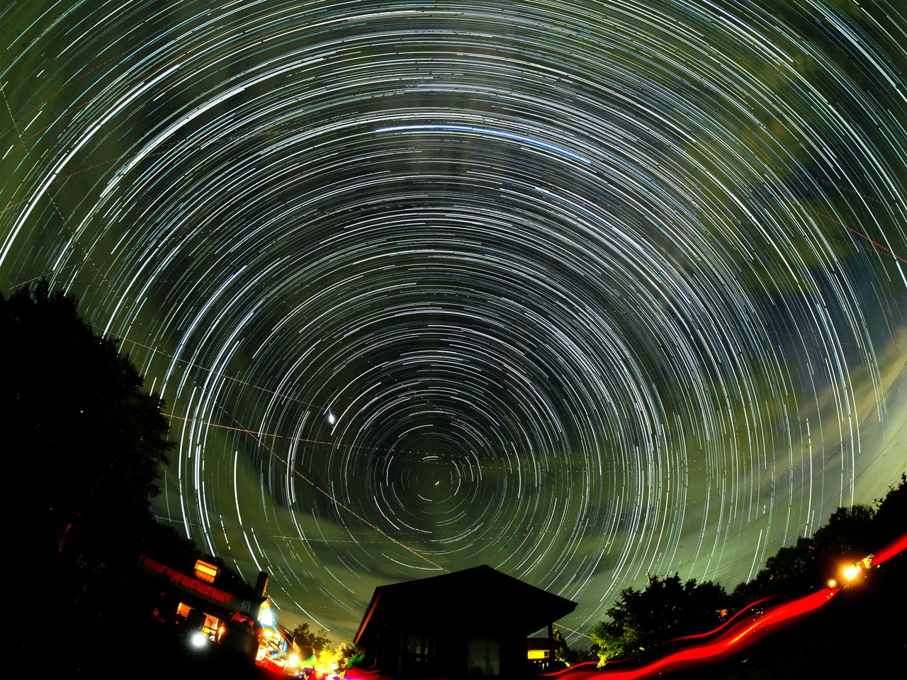 真南を向けると星の軌跡はほぼ真横に直線に近い状態で描かれます