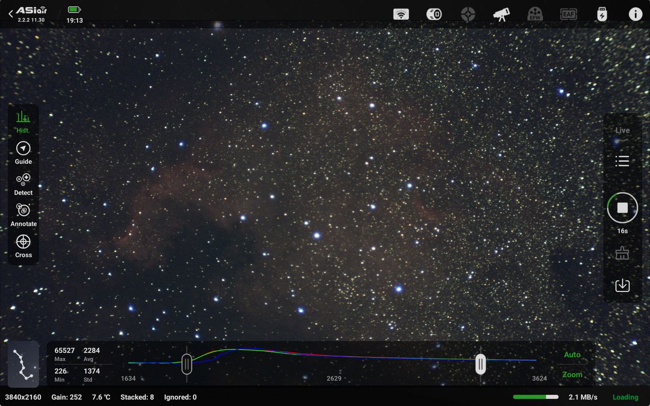 さらに肉眼で全く歯が立たない北アメリカ星雲のような淡い星雲もモニター画面上にすぐに(セカンドショットくらいから)見えてきてうれしくなります
