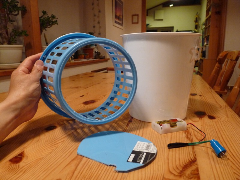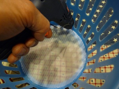 次にこのカゴの底にピッタリ収まるようにプラ段を円形に切り抜き、ホット