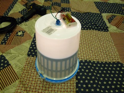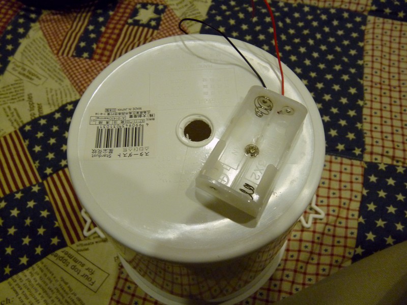白いくずかごの底にランプソケットを入れる穴と、電池ボックス固定用のビス