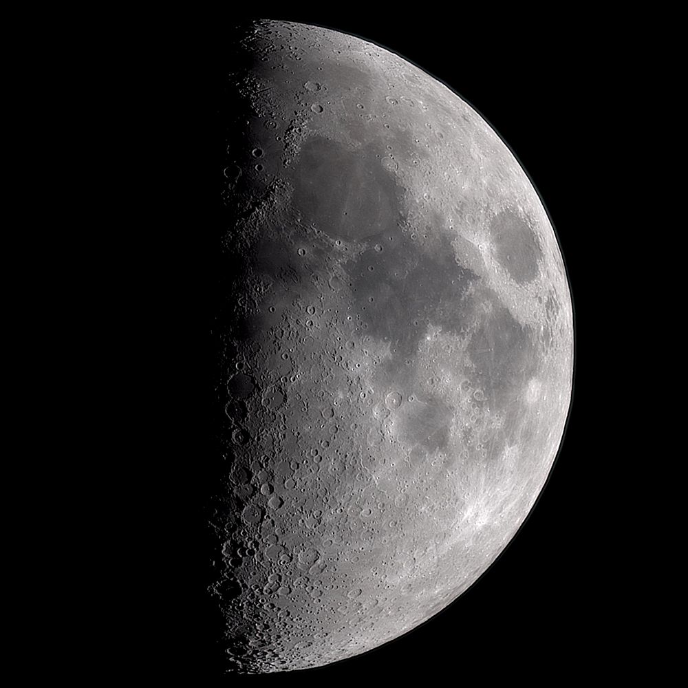 上弦の月が高く昇っています