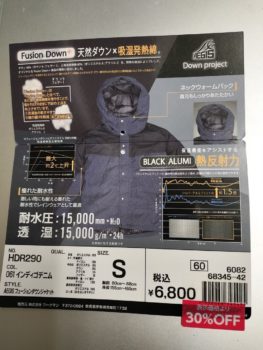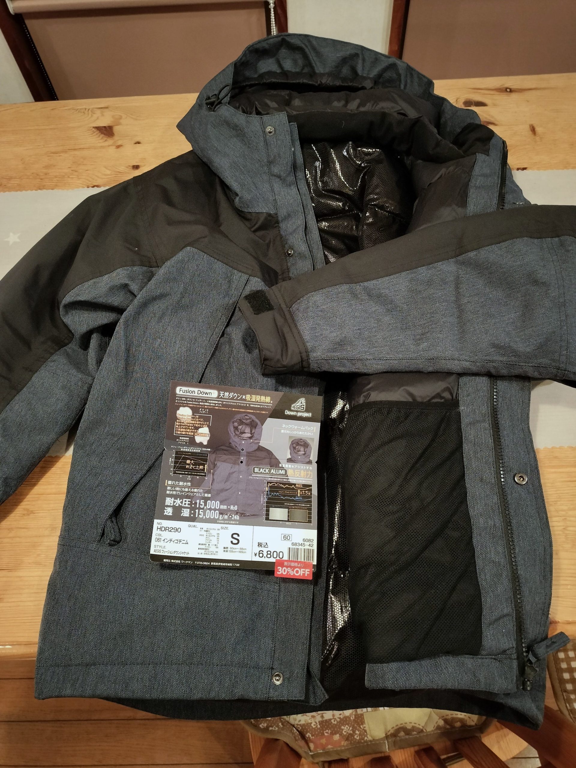 いろいろ高機能なコートもあったのですが、私が着てちょうど良いSサイズ、そこそこの防寒性能、そこそこの防水・透湿性能、何より在庫処分の3割引ということでこちらを購入しました