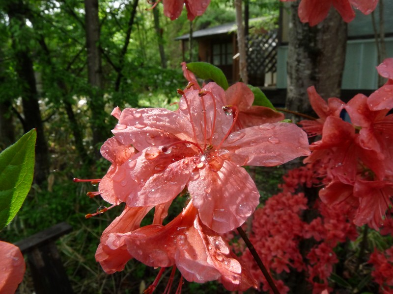 滴に濡れたツツジの花が輝いて見えました。(^_^)