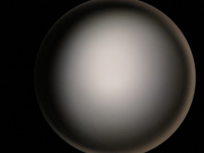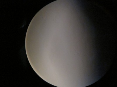視野円はほぼ中心にありますが、光軸が完全でないため左側に影が出ています。