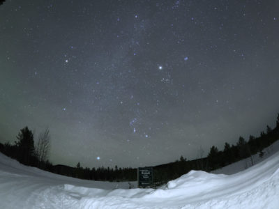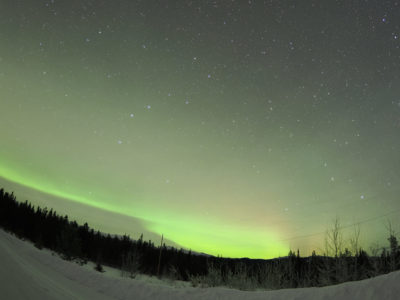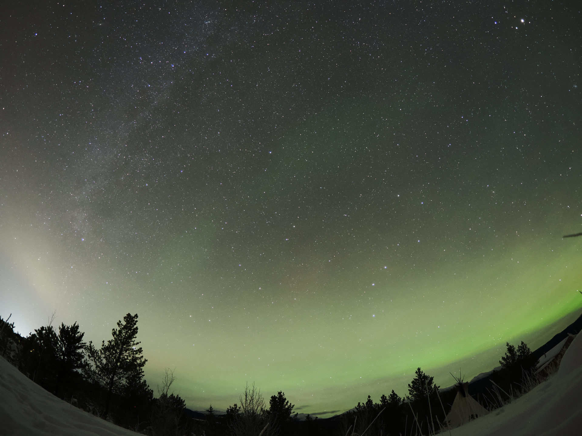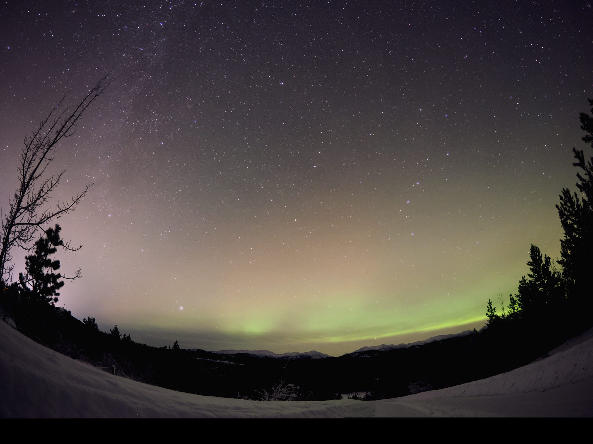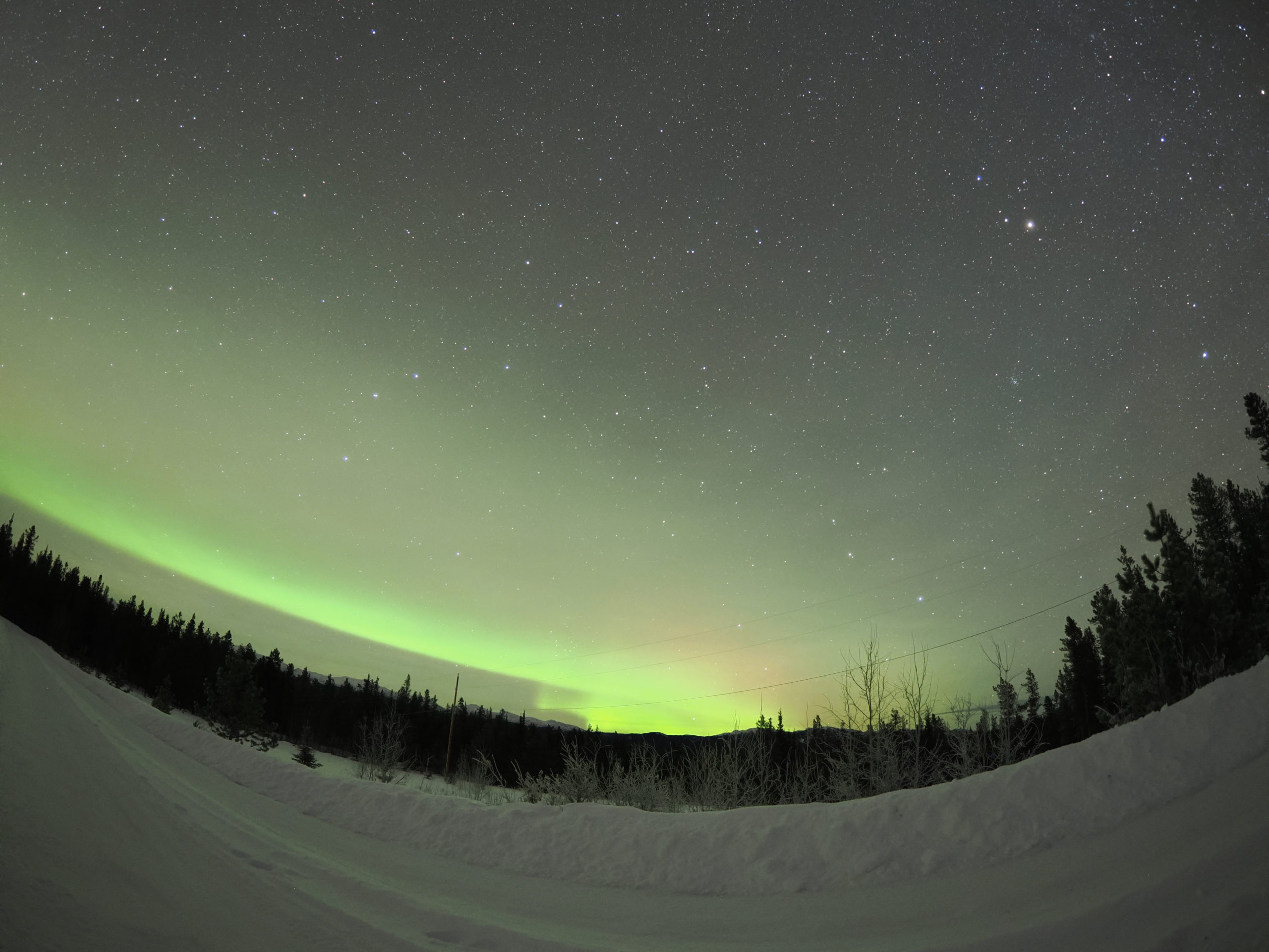 北西にはホワイトホース中心地の光が天の川の見え方を少し邪魔をしていますが、それでもスタパよりは一段空が暗くて冬の天の川が普通に見えます